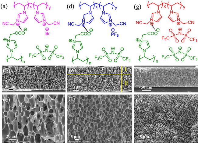 鉴于此,南开大学化学学院王鸿研究员课题组在前期工作的基础上(Nat. Commun., 2017, 8, 13592; Angew. Chem. Int. Ed., 2017, 56, 7847; ACS Nano, 2017, 11, 4358; Angew. Chem. Int. Ed, 2018, 57, 12360),通过对聚离子液体的结构调控首先合成了一系列不同孔径的聚电解质多孔膜。