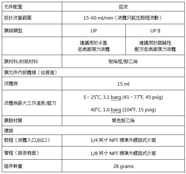 3M™ Liqui-Cel™ SP-1x3系列膜接觸器產品參數表