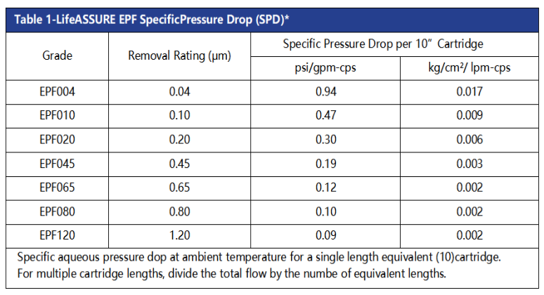 3M™EPF终端系列滤芯参数表: