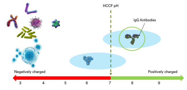 通过对发酵液中不同组分的分析,发现杂质和抗体蛋白带电性存在差异。利用这个差异可以去除大部分杂质,从而获得纯度较高的目标抗体产品。从而大大减轻下游层析的压力。