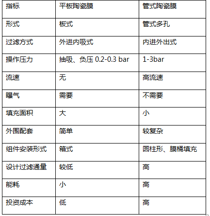 備注:平板陶瓷膜與傳統的管式陶瓷膜比較最大的優勢,在應用于水處理領域中,填充面積大、運行壓力低、運行成本低。