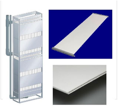 陶瓷平板膜是以無機陶瓷材料經特殊工藝制備而成的板狀膜,其陶瓷部分的主要成分為三氧化二鋁,能夠在強酸、強堿、高溫等極端苛刻條件進行分離,是一種應用前景廣闊的高新水處理技術。目前,無機陶瓷膜中陶瓷平板膜以其結構簡單、分離效率高、操作方便、設備緊湊、無相變、節能等諸多優勢,廣泛地應用于水處理實際工程中,并取得良好的運行效果。集水部分的主要成分為高分子聚乙烯。目前,平板陶瓷膜主要用于微濾,但也有用于超濾,孔徑一般為0.05-0.2um。陶瓷平板膜過濾機理主要是篩分機理,膜的物理結構起決定性作用。陶瓷平板膜的過濾方式為抽吸方式,在陶瓷平板膜的內部設有豎狀的集水管,縱向兩端設有集水橫管,集水橫管口的一端與抽吸泵相連,在泵的抽吸作用下,膜池內的污水從膜兩側的表面進入,污水中的懸浮物質、雜質等污染物質被陶瓷平板膜截留,過濾處理后水流經集水豎管,在膜兩端的集水橫管匯總,由抽吸泵抽出,以達到分離效果。